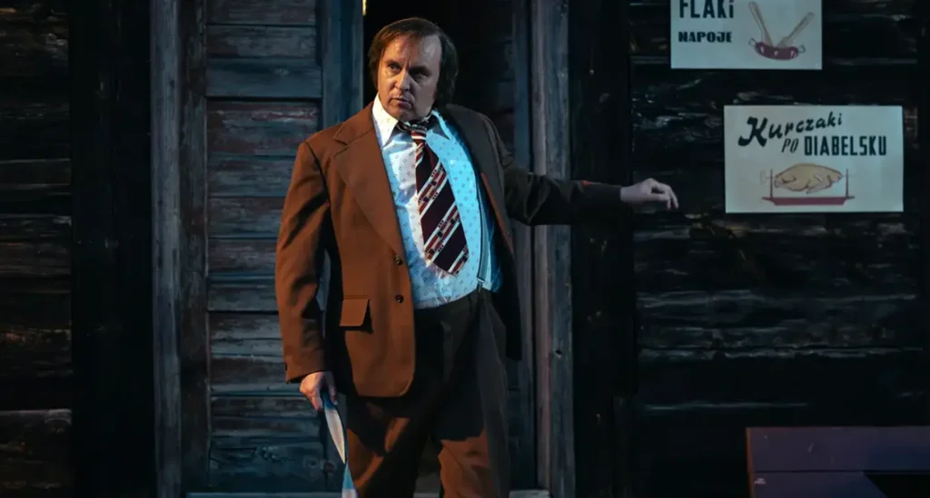 A czego? Do końca nie jestem pewien, bowiem „Zamach na papieża” jest o wiele gorzej dopracowany scenariuszowo niż „Psy”. Zresztą mimo kilku dobrych zrywów jak np. fragmenty „Kuriera” czy niektóre sceny „Pokłosia” (w tym fenomenalna scena z Robertem Rogalskim) cała reszta twórczości Władysława Pasikowskiego z XXI wieku („Hans Kloss. Stawka większa niż śmierć”, „Psy 3”, „Jack Strong”) nawet nie leżała obok jego kina lat dziewięćdziesiątych. Kuleje mocno i „Zamach na papieża” także kuleje. Ma wyrazistych bohaterów, dobrze zagranych (no ale gdy się ma Adama Woronowicza czy Karolinę Gruszkę trudno o złe zagranie) albo zagranych słabiej (przerysowany Dobromir Dymecki, od laty już nijaki Zbigniew Zamachowski), ma dobre tło gdzieś na podkarpackiej prowincji. Ma jednak wiele mielizn z najważniejszą – nie zawsze wiadomo, o co chodzi i do czego to zmierza.
