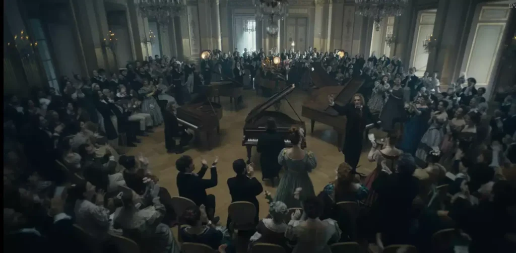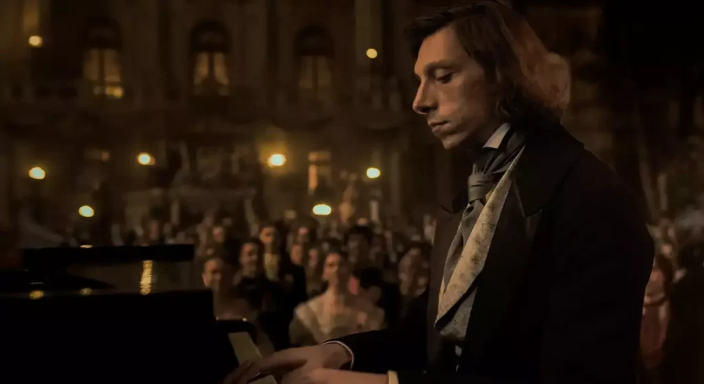 Fryderyk Chopin w tym filmie dobrze wie, że jest ponad nimi. Wie, że jest ponad Lisztem i innymi kompozytorami. Wie, kim jest. Nie czyni to jednak z niego dupka. Owszem, jest uzależniony od poklasku, uwielbienia i sławy, samej gry na fortepianie, ale jest też świadomy wszystkiego, co się z nim dzieje. Tak swego geniuszu, jak i choroby, wreszcie przekleństwa, jakim jest niemożność zaangażowania się uczuciowego na dłużej.